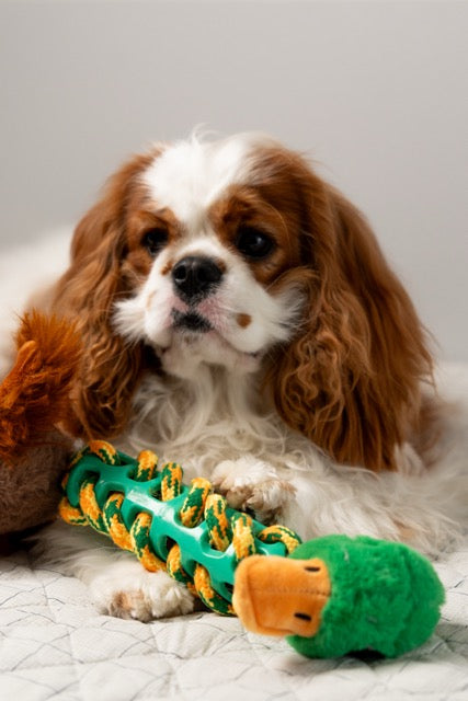• Pescoço com corda trançada – ideal para puxar, mastigar e sacudir