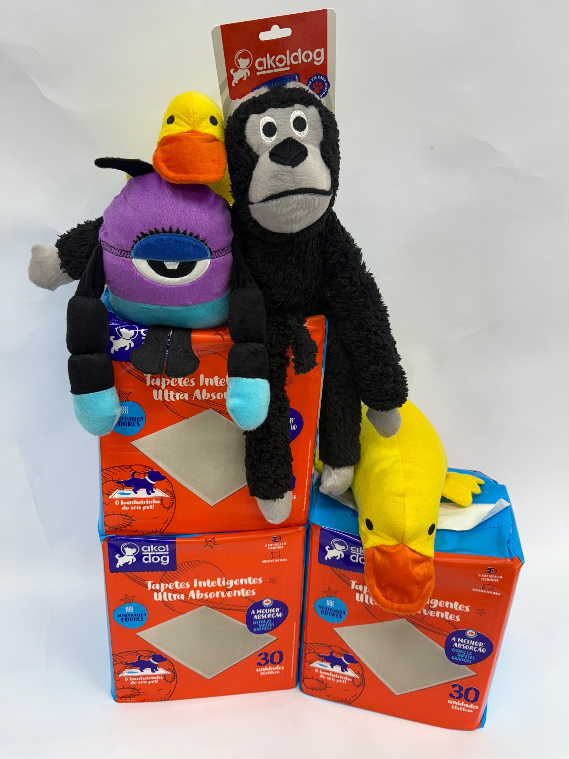 Acompanha 1 brinquedo à sua escolha: macaco, monstro ou pato
