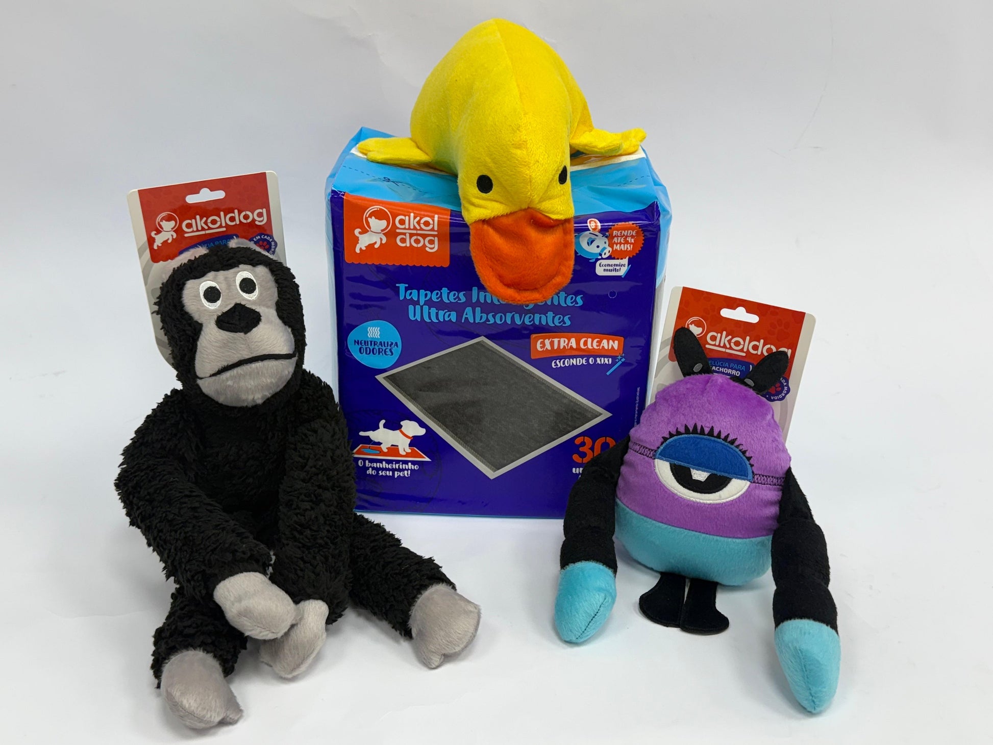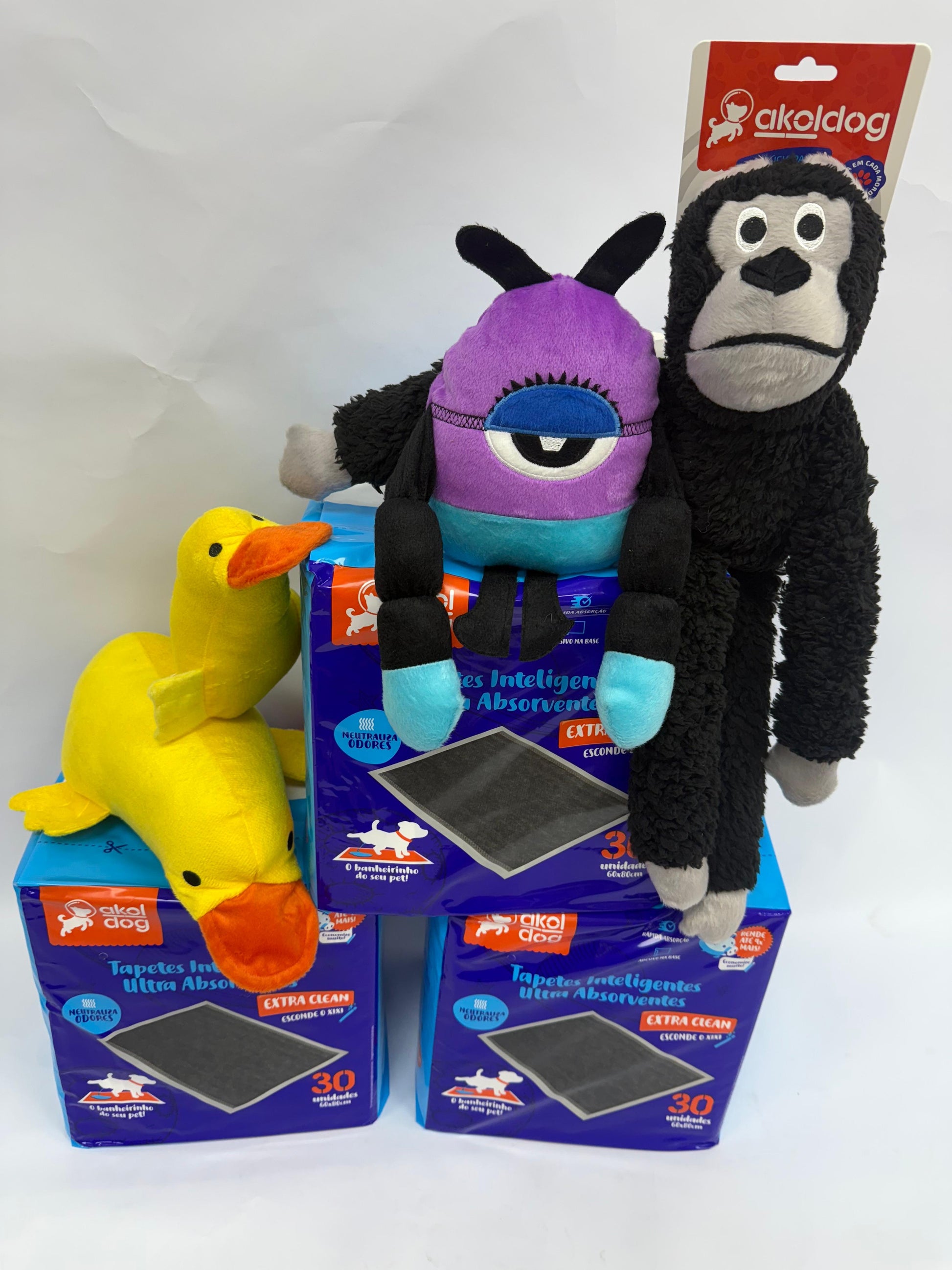 Acompanha 1 brinquedo à sua escolha: macaco, monstro ou pato